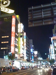 I feel shivers going down my spine. Jaw-dropped, I stand immobile at the foot bridge in Umeda whilst commuters around me walk in orderly lines, the light of thousands of neon lights reflecting against their pale skin in the warm summer evening.