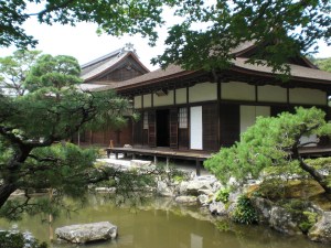 At Kinkaku-ji, the black wooden beams support stunningly golden walls. Built in the 1200’s as a country house for the Emperor, the reflection of the small and proportionally perfect structure in the murky lake sums up the most perfect Japanese postcard.