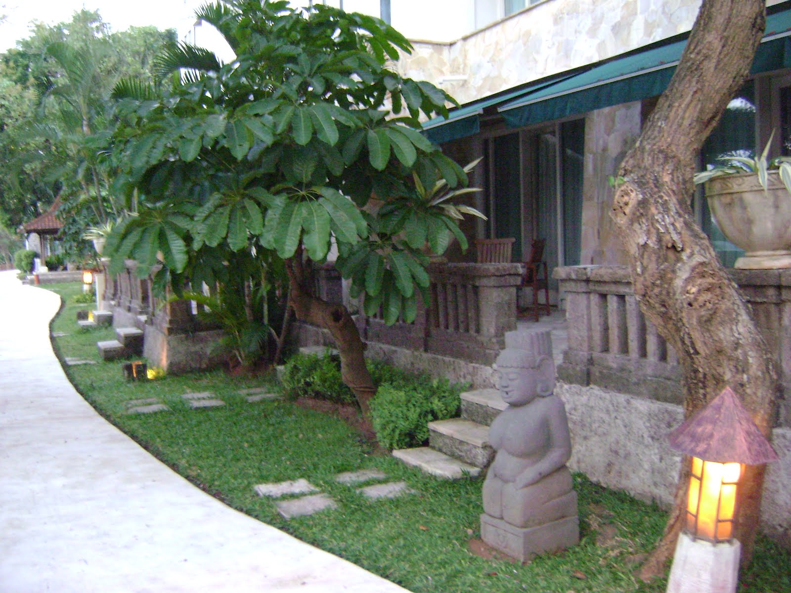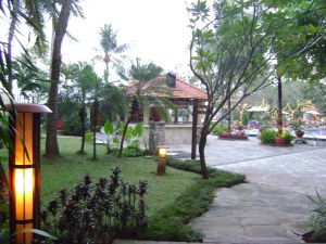 At the hotel, the thatched roofs shelter buildings of spa-like open areas and rooms. The still water of the infinite pool overlooks at a lagoon in which thousands of frogs sing through the tropical night.