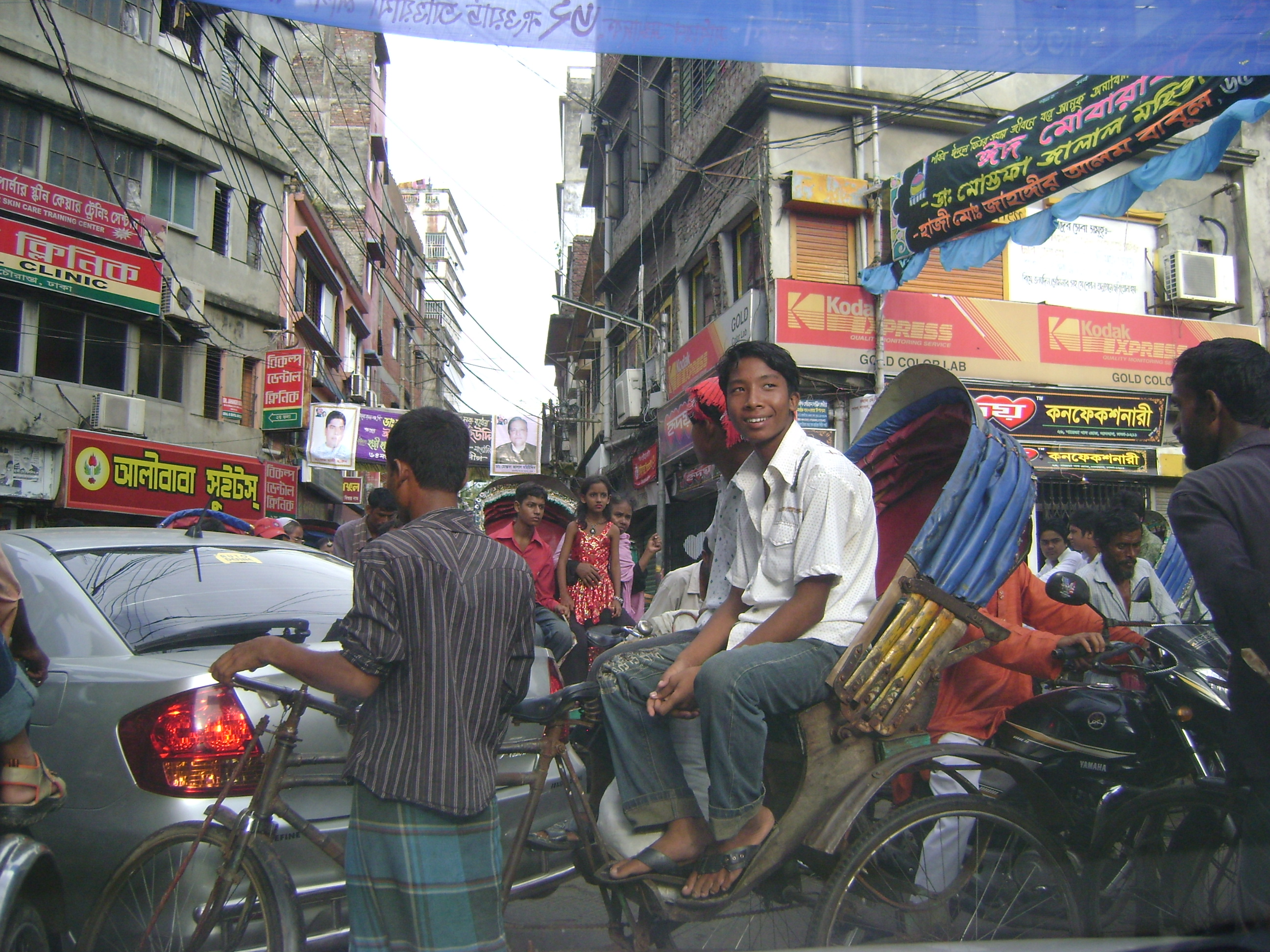 Eid is being celebrated across the Muslim world and in Bangladesh, this means the streets are traffic-free. Radio beaming Hindi music at full blast, the taxi driver explains in his limited English about the many peculiarities of the city, the million of residents that have this week vacated the grind and have traveled home, the daily fight with rickshaw drivers and cows, the shockingly low salaries. He changes the CD for a mix of Female pop music and, Britney Spears or not, we reach a building of pink walks topped by asbestos. ‘The Royal Palace, I take picture’, he says, before we continue our tour speeding across leafy thoroughfares to Dhaka University, where the British have left a beautiful structure built in red bricks and Victorian lines, a treat of the Old East Pakistan remaining pristine through the adversity.