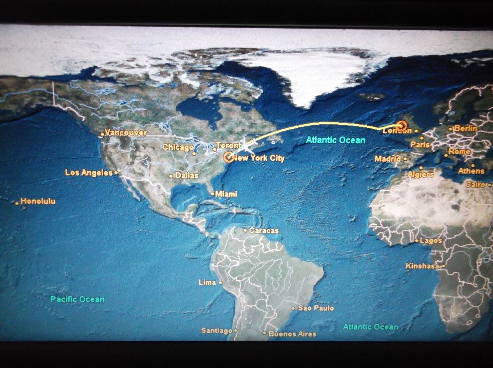 In the late morning, ‘St. Patrick’ heavily lifts off from the runway and climbs through white clouds of snow and sleet before clearing the way for an upwind crossing. Cookies, tea, ravioli with mince, dessert and four movies later, I spot the New England coast shining underneath us, seconds before the airplane nose points down and we start our bumpy descend over Long Island and into John F. Kennedy Airport at Jamaica Bay.