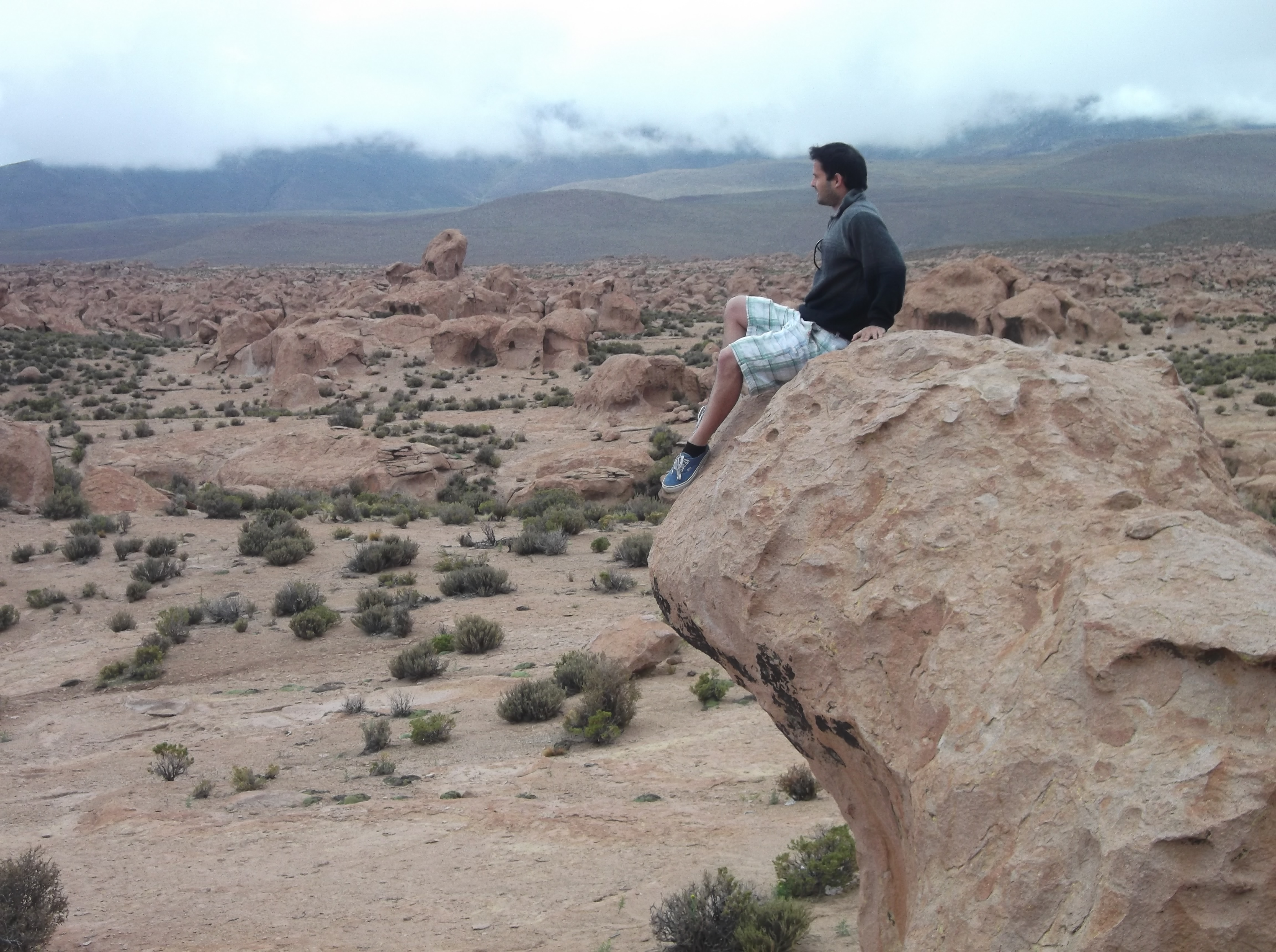 ‘ We drove down the road towards the border with Chile into a land in the middle of nowhere. No trees in sight but a jungle of rocks and a landscape resembling the Moon or even Mars. First stop was Valle de Piedra (Stone Valley) where erosion over thousands of years created the most amazing shaped stones I have ever seen. Figures resembling condors (Andean eagle), tigers, half donuts and arches. Figures that played with our minds and our imagination right in vastness of the Andes’ .