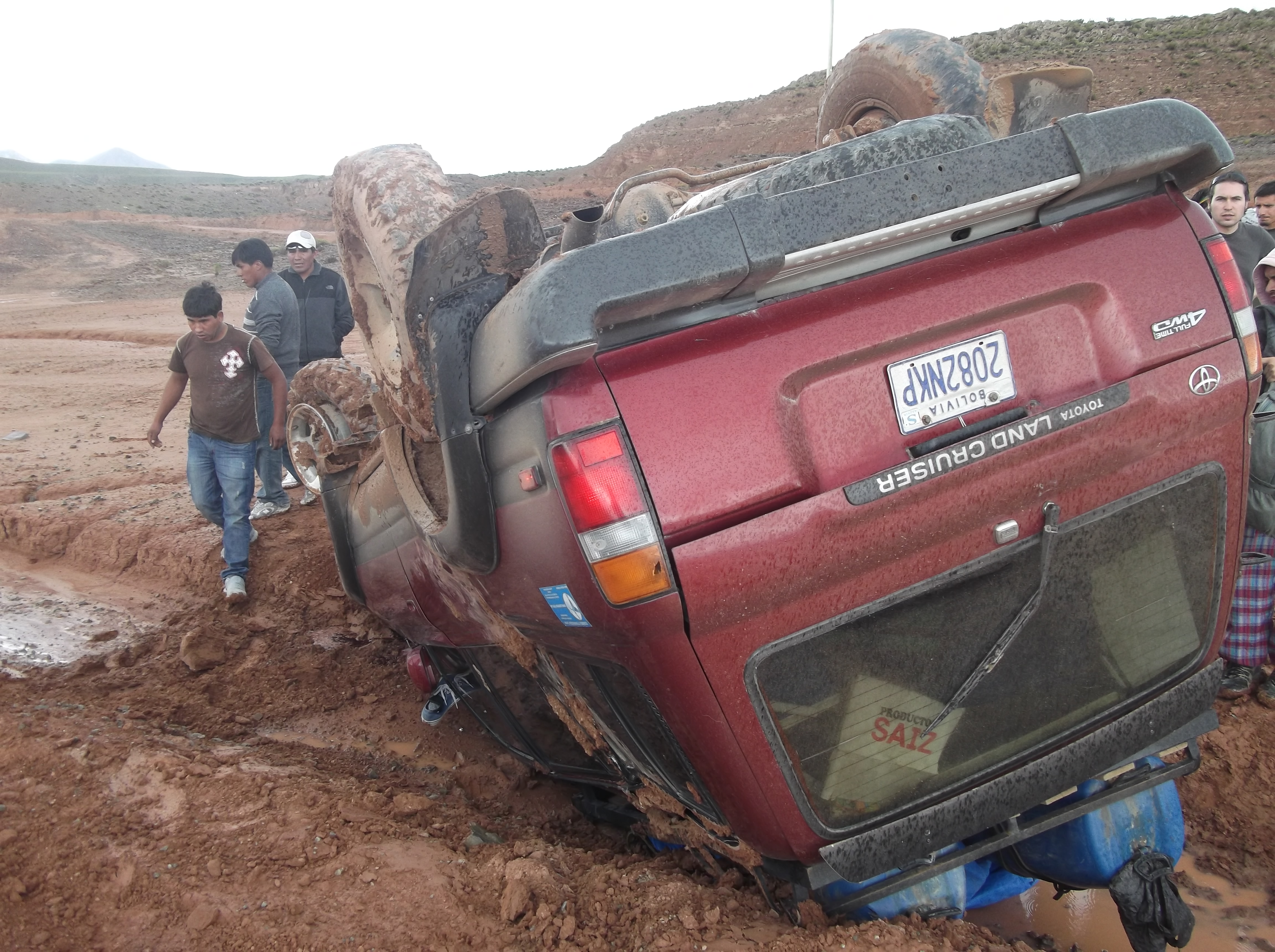 The rain catches up with us shortly after San Cristobal and turns the gravel road into a skating rink. On the front seat, with no seatbelt on, everything happens in slow motion: a long wide curve ahead, the driver swerving his arms trying to regain control, the car detaching itself from the main road and floating to the side before hitting the ditch, one, two , three times, each time felt like a slap in the head after misbehaving. Upside down and for a number of seconds, all that I can hear is silence, before the cries for help begin and the survival instinct kicks in.