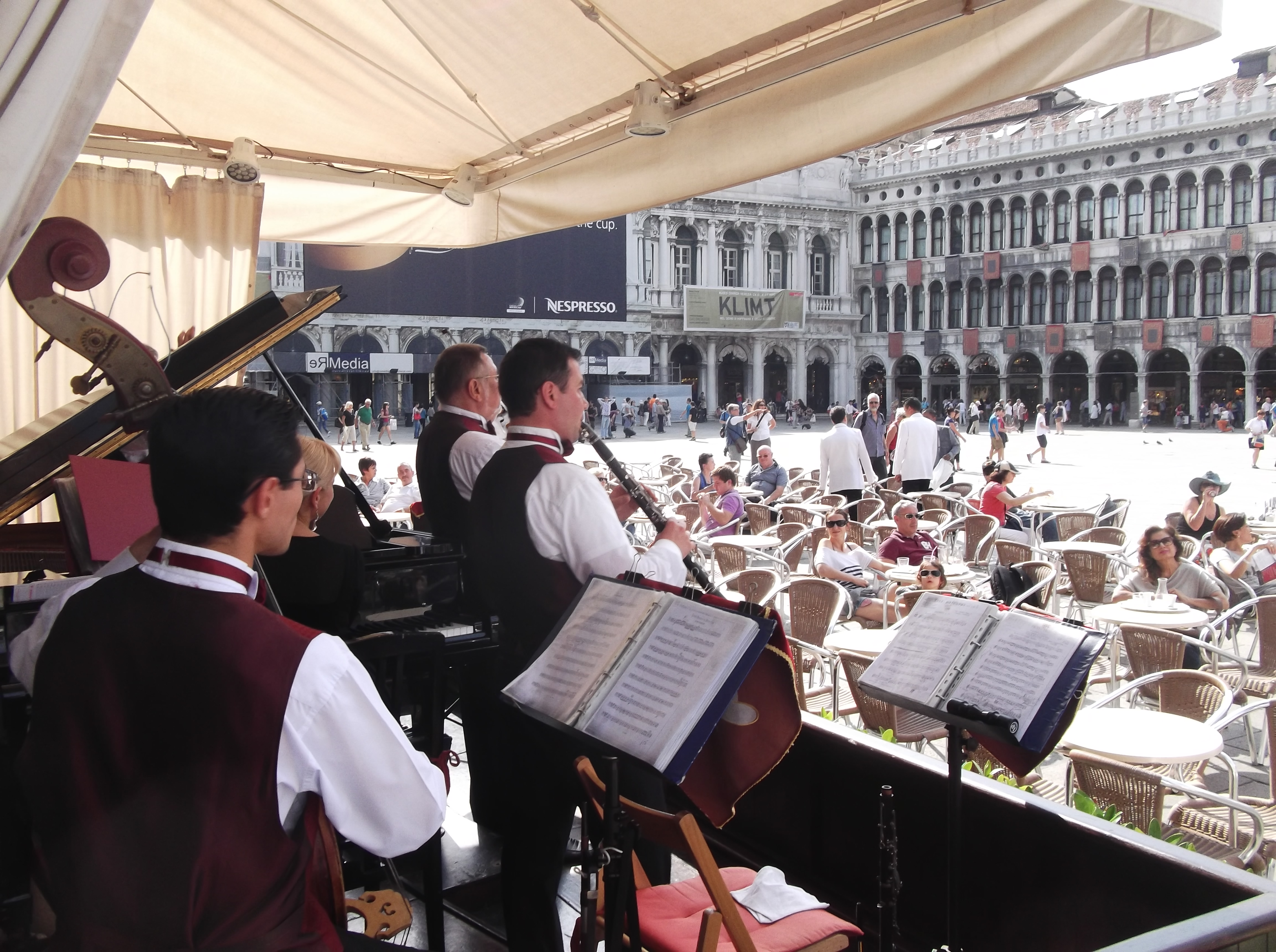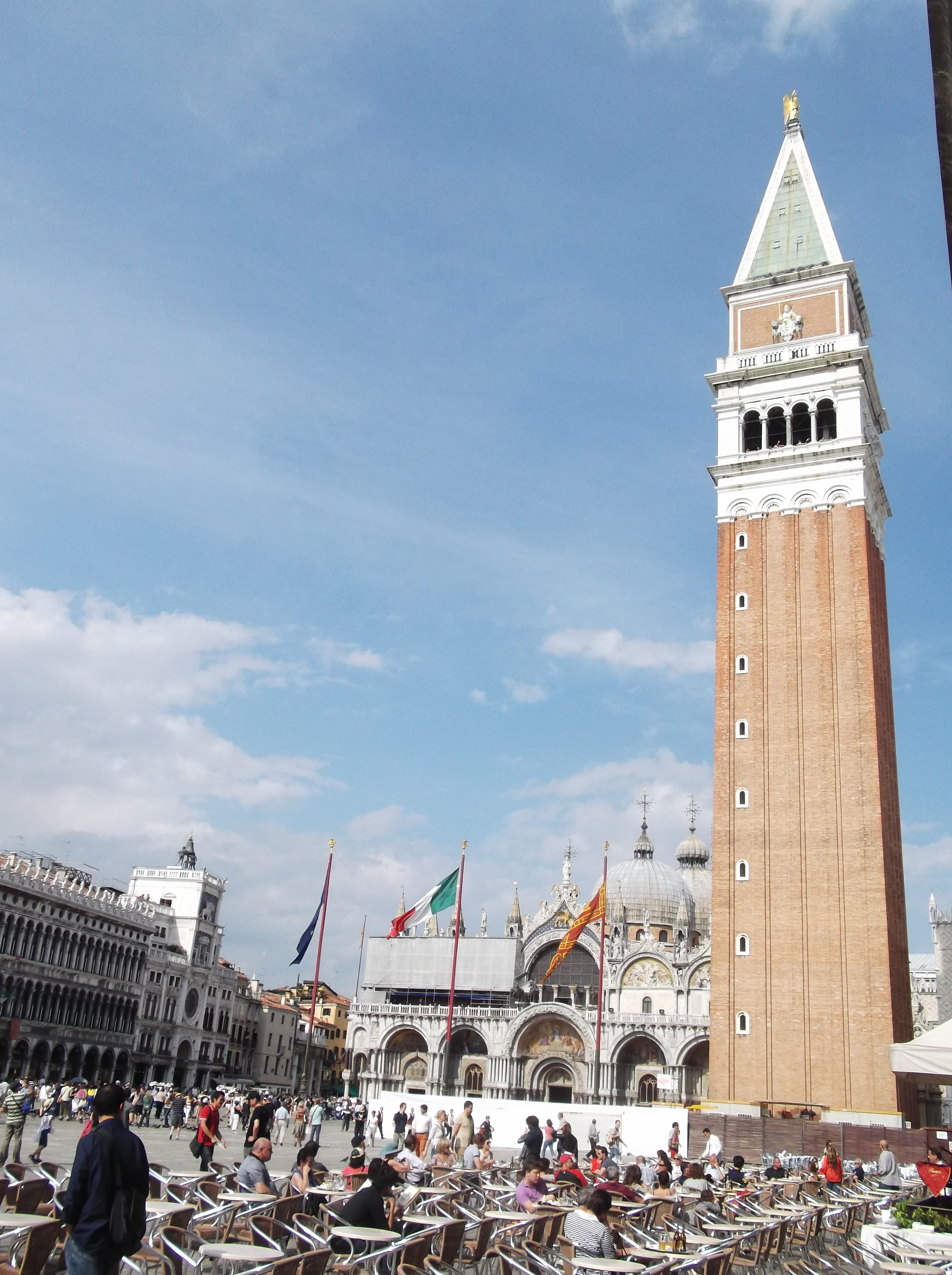 At Rialto, I feel smothered by the hundreds of Chinese tourists that look from the top like pigeons on an electric cable, their selfie sticks protruding like a forest of pure annoyance, yet I feel refreshed at the largest open space in the city, Piazza San Marco, where an orchestra plays a mellow tango to wealthy patrons. The Campanile, a tall red-bricked tower, act as a beacon in a sea of narrow alleyways, in the afternoon packed with tourists from all over the world.