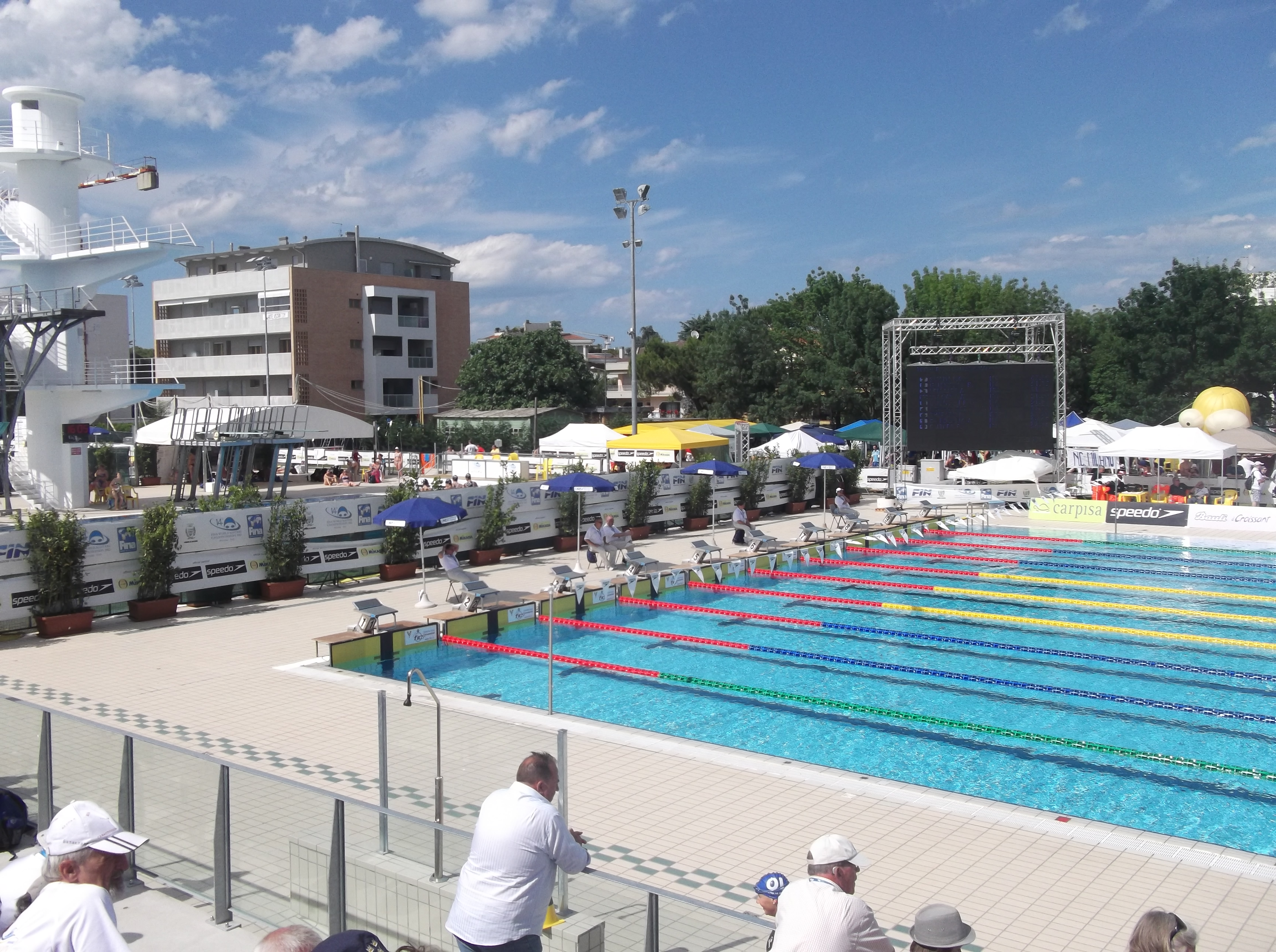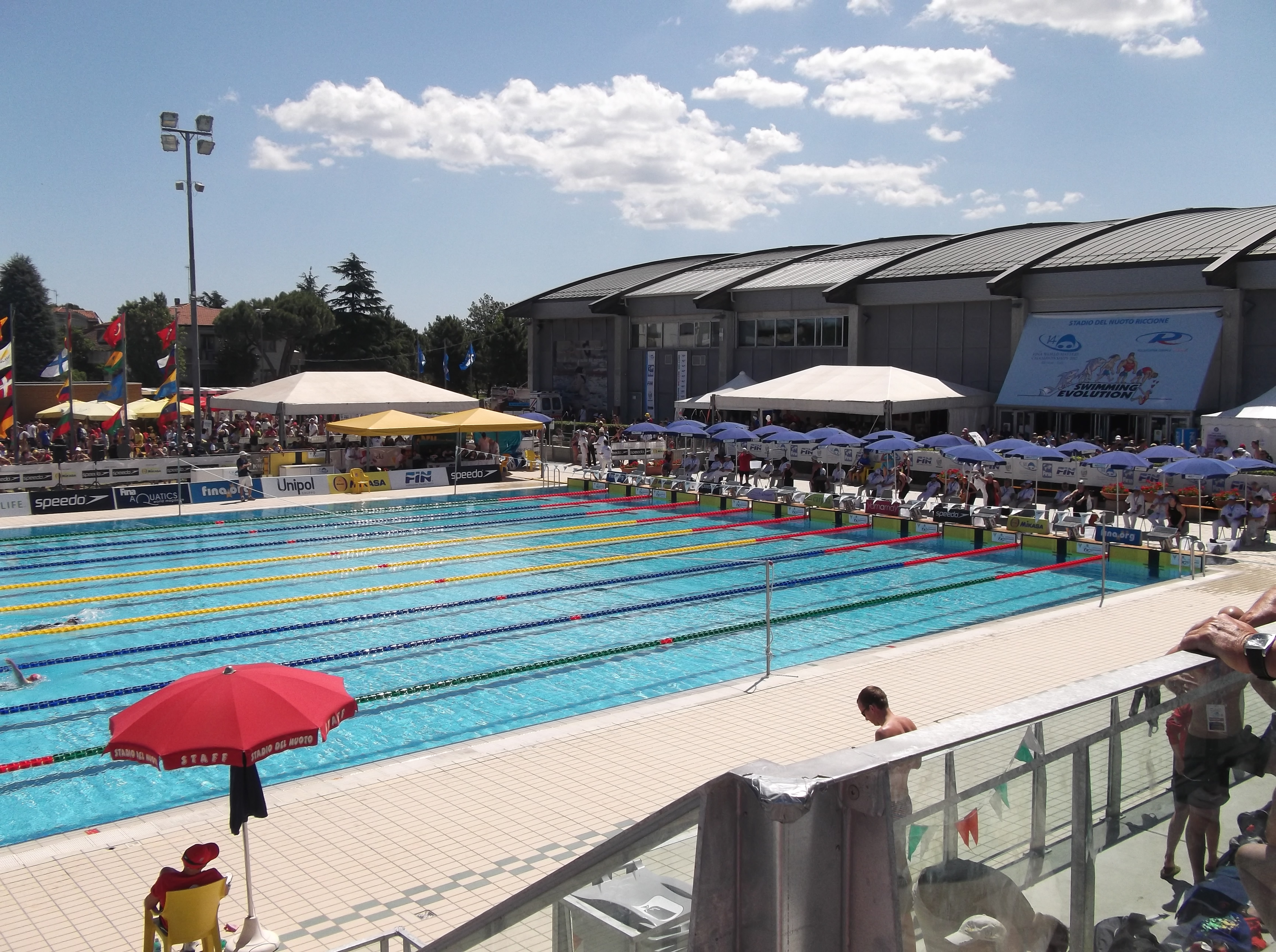 At the aquatic centre, thousands of Master athletes roam like headless chickens in between two pools bare exposed to the Adriatic sun. I warm up and stretch my arms after the long trip, change back into flip-flops and shorts, and spend the evening sipping on strawberry gelatto by the deserted and dark beach.