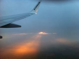 A rainbow is drawn over the Alps upon departure and rain is poured over our aircraft upon arrival in Dublin Airport almost three hours later.