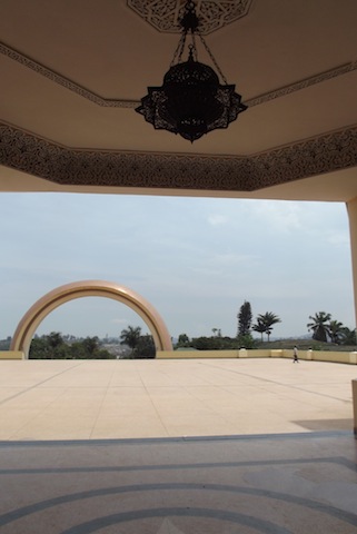 A pink arch dominates the entrance and opens up to a porch of intricately detailed lamps. The main hall is empty and carpeted by Saudi’s best, while the tinted windows, extravagant in these latitudes, came from Sudan and Morocco. I am asked if I want to climb to the top of the minaret and I excitedly say yes. The spiral staircase winds up a narrow and dusty tower that rises towards a blue sky that dominates a horizon of green hills and slums that extend from the city centre all the way to Entebbe, Lake Victoria’s retreat.