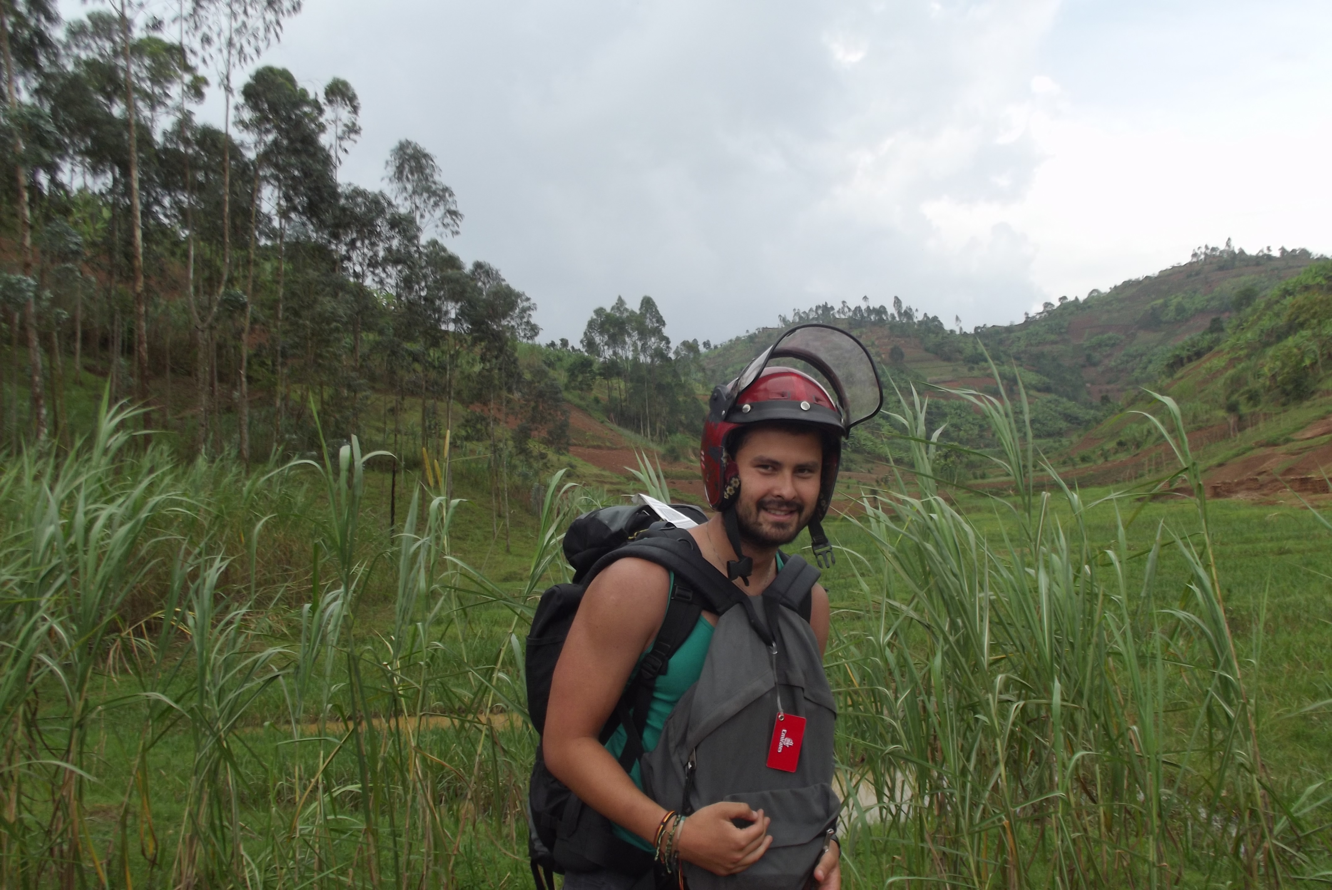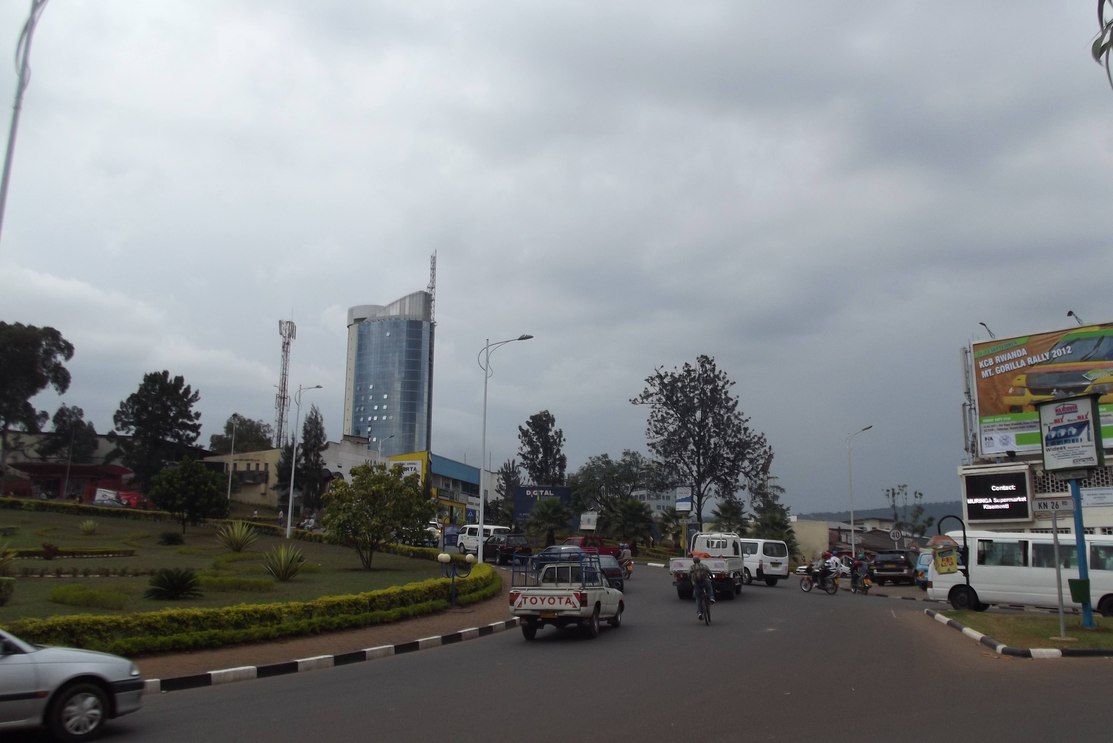 And as we pass rice crops glistening under the sun, and the roadsigns read for Kigali, three tall glass towers protrude from a round hill in the distance. For the first time in this trip, the bus pulls into a modern bus terminal -with platforms-, ending this tough part of the journey for both him and I.