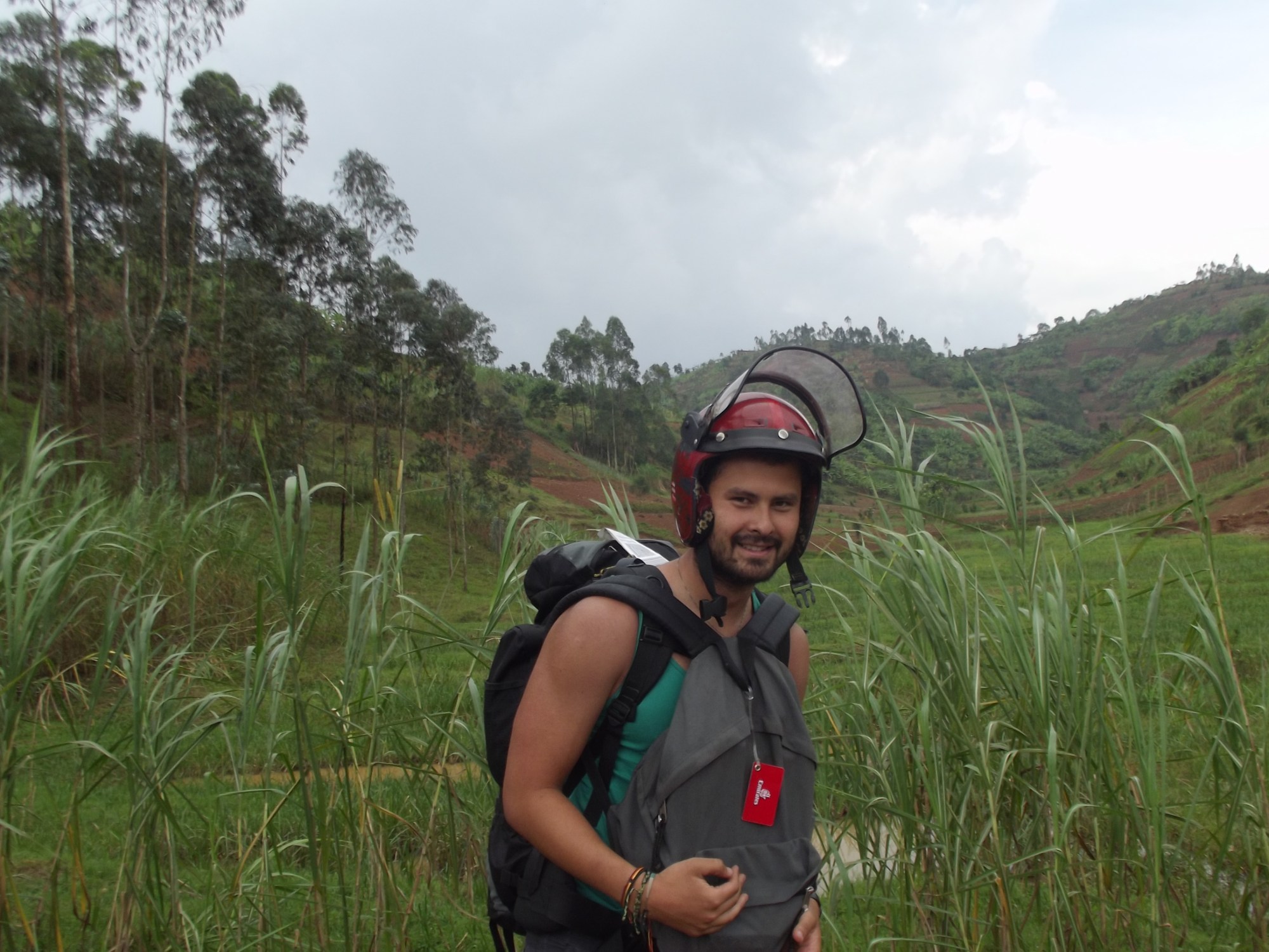 And as we pass rice crops glistening under the sun, and the roadsigns read for Kigali, three tall glass towers protrude from a round hill in the distance. For the first time in this trip, the bus pulls into a modern bus terminal -with platforms-, ending this tough part of the journey for both him and I.