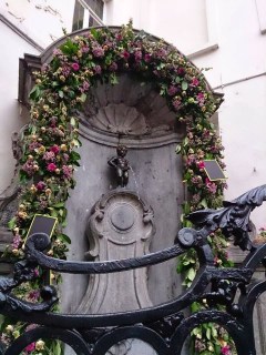 The tour follows through the parade of Brussels’ tourist traps and onto the statue of the peeing child, or Manneken Pis. Old historians affirm that these type of statues were produced and placed in strategic spots where the least wealthy could meet and sell their urine to the leather makers. Today, the little fella stares over a crowd of tourists in contempt. He speaks of the grim past of the Belgian capital, and the grim present that followed.