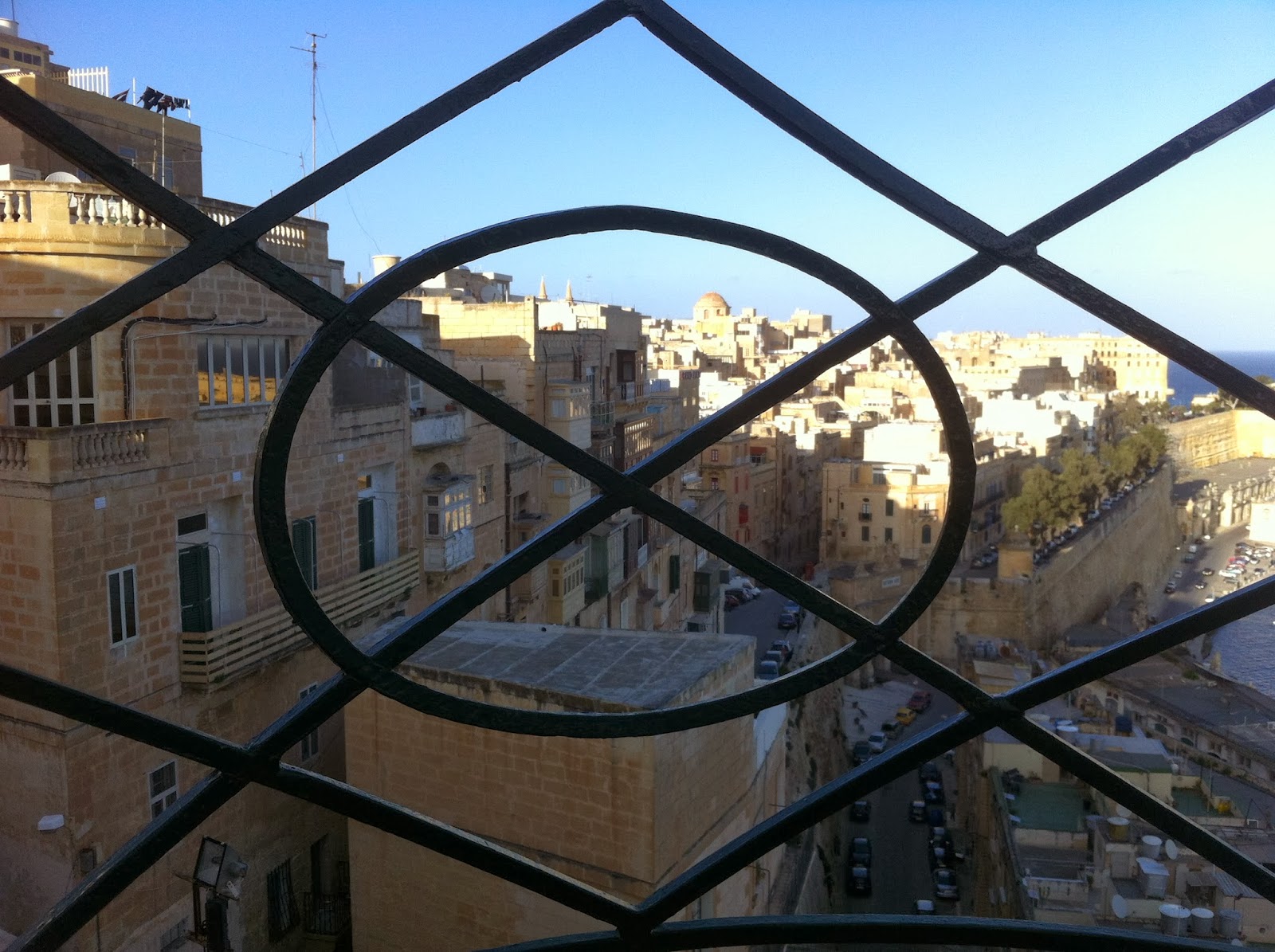 Once in the dorm, I open the big windows and, insulated from the heat by the cold thick rock walls, I rest my feet on the ledge and look outside to a ridiculously blue sky colliding with the shades of Valetta in the background.