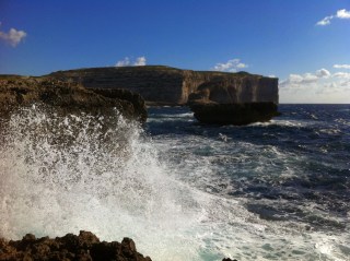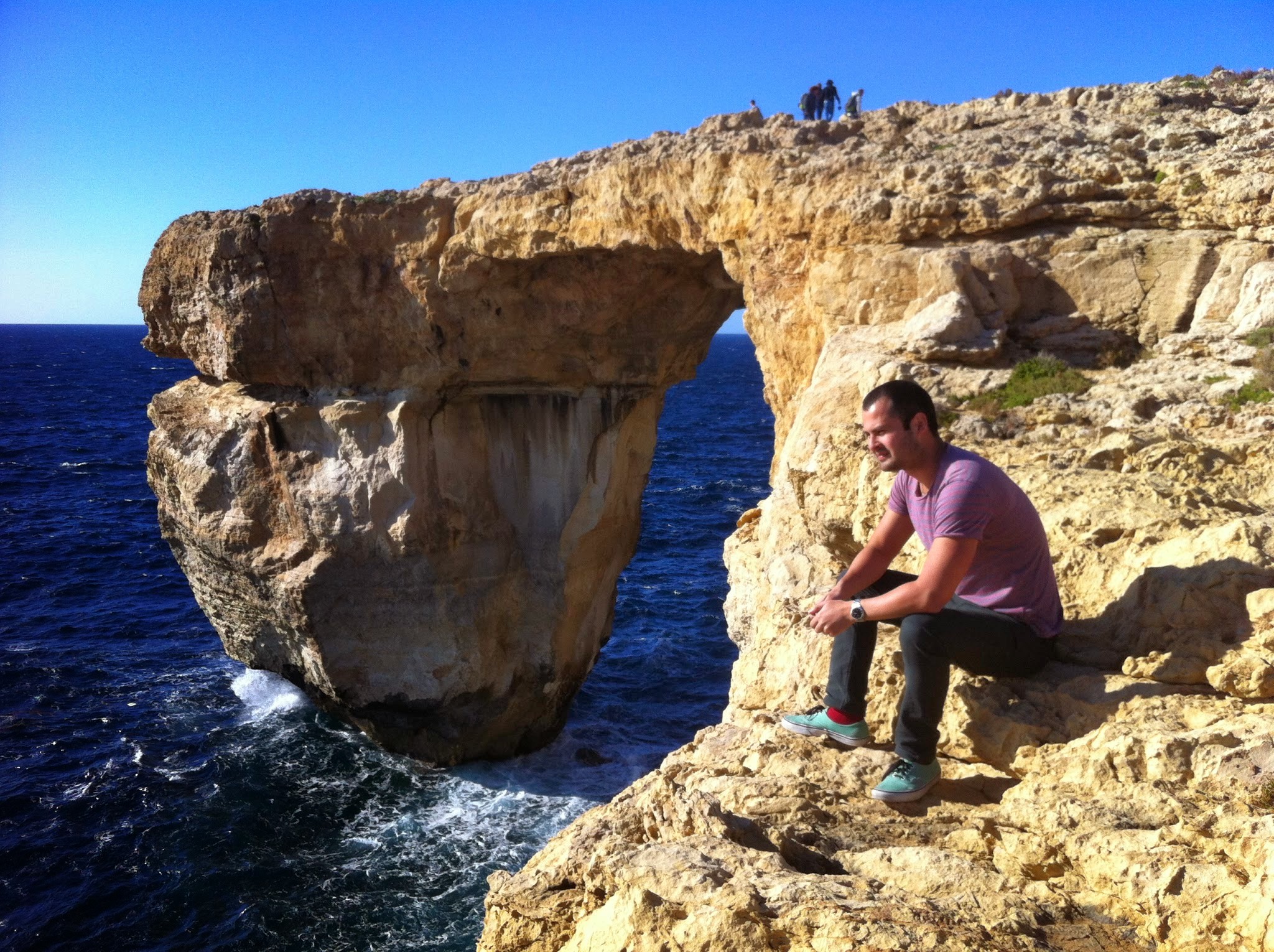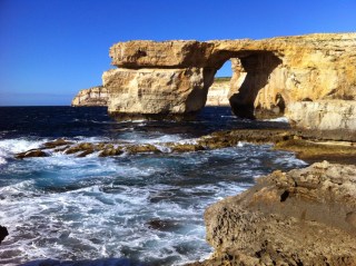 I open my backpack and share a picnic. I open a bag of biscuits and cut through a block of yellow cheese. The wine is poured in plastic cups as the wind blows over the rocks. Bottle finished, brain compromised. Perhaps the best memory of this trip: standing atop the unique golden arch with my feet hanging over the Mediterranean and my head floating up to the blue sky.