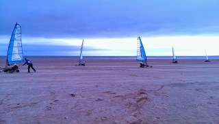 Too much wine, too little energy. A Red Bull along with an omelette is necessary in the morning before an early adventure in St. Andrews’ West Sand Beach, which also happens to be the main setting for the movie Chariots of Fire. Big blue sails can be seen from the distance and we are told to brace ourselves for blow-karting time.