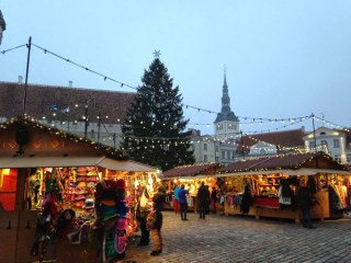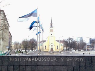 Once checked in and warmed up with a hot peppermint tea, I decide to venture outside again and see a bit more of the city before it gets dark, climbing up slippery steps at Freedom Square, which commemorate the Estonian War of Independence with a tall glassed cross and finishing the sightseeing with the lights of Tallinn being lit as the long night sets.