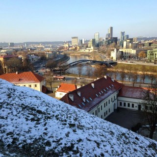 I arrive in Vilnius an hour after crossing the border. Buildings are covered with a light layer of snow and for the first time in the duration of this overcast adventure, sunshine timidly shines through the clear blue sky.