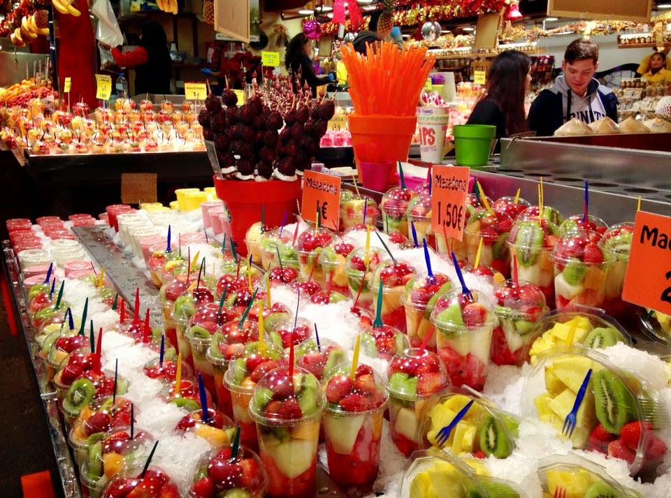 El Mercat de la Boqueria is on the cards, the perfect place to shelter from the rain whilst enjoying a refreshing freshly made smoothie and soaking up the aromas of freshly cooked seafood, the almost synchronised sound of loud merchants selling fresh fish and the festival of bright colours of carefully laid food stalls, everything framed by a steeled structure and a colourful glass arch, designed by the omnipresent Gaudi.