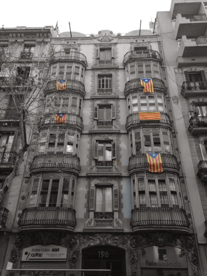 Wide avenues, perfectly organised in grids form a region defined by art nouveau apartment buildings in which gracious glass balconies are decorated by Catalonian flags.