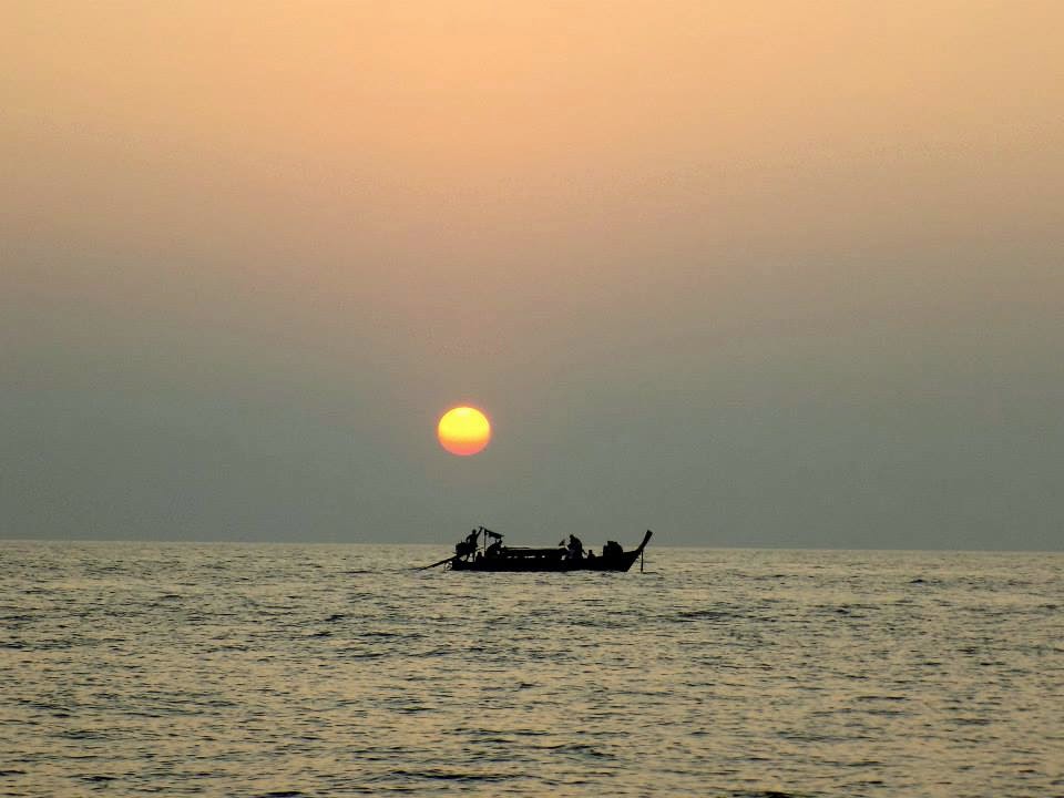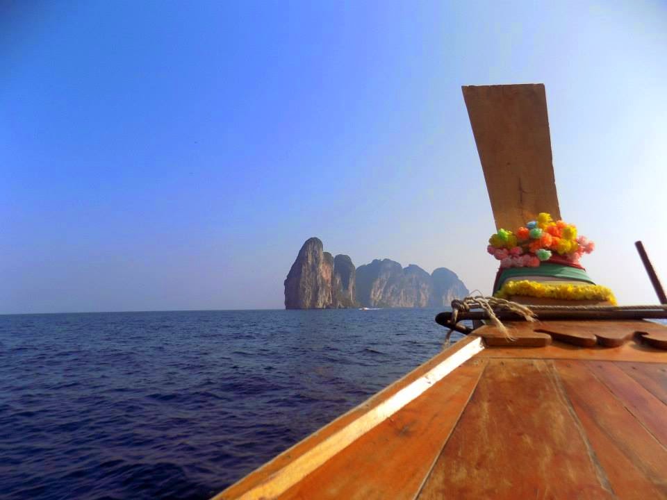 The quiet navy blue waters of the Andaman Sea seem to easily flow under the hull of our slow boat, rocking and splashing our legs at times, soothing the effects of the Equatorial sunshine slowly burning our skins.