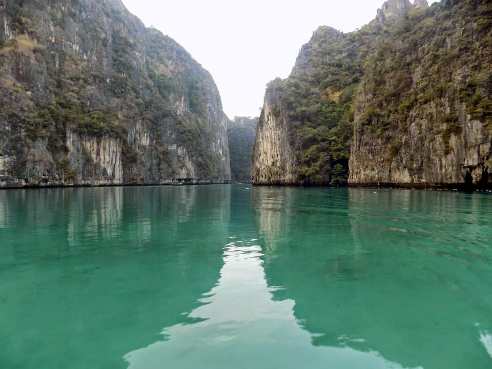 Bordering rocky shores and navigating across the bay we finally reach the island of Phi Phi Leh which slowly reveals our next docking point: Maya Beach, ‘The Beach’ beach.