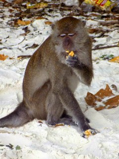 Tourists seem to almost crawl in the white sand trying to get close ups pictures of the several monkeys wandering around the place.