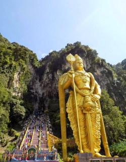 Lord Murugan, standing almost 42 meters tall jealously guards the long set of stairs leading up and inside the dark caves.