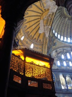 Inside this magnificent building, history seems to overlap in an aggressive yet fascinating way, and thousand year-old mosaics dominate the details of solidly crafter arches, covered in gigantic round panels with Qoran scripts on them.