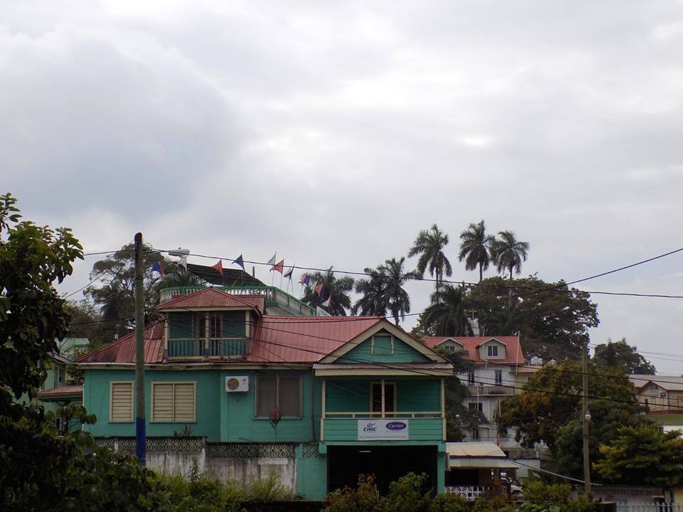 Our dose of Belizean reality is infused whilst roaming around the empty and heat-charred streets of Benque Viejo, in between quaint houses with doors half open, taking a rest from the world and the weather at the shadow of the local school resting area, where kids are heard loudly repeating their lessons though the striking colorful wooden windows embedded in a white building and good free Wifi is available.