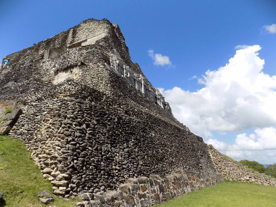 A short ferry crossing across a majestic light green colored river and a 20-minute steep uphill walk bring us to the Xunantunich, or Stone Lady.