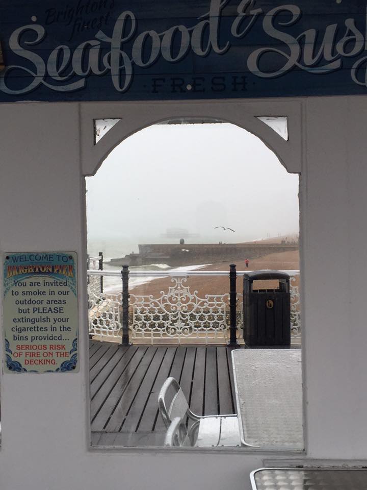 The Westerly wind clears the mist by midday. Brighton wears its hipster card and a fancy paella is devoured on colourful paper plates for lunch. A coffee and a cake with my friend working as a send off from Sussex.