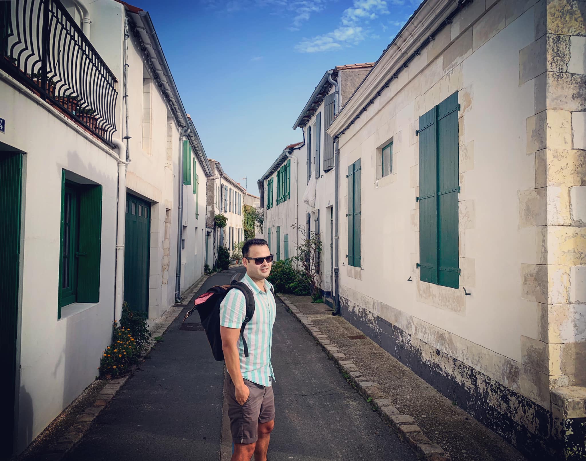 I plan a budget weekend in France with ex-colleagues. We rent bicycles in Ile-de-Rê during the hot days and dine on seafood during the chilly nights.