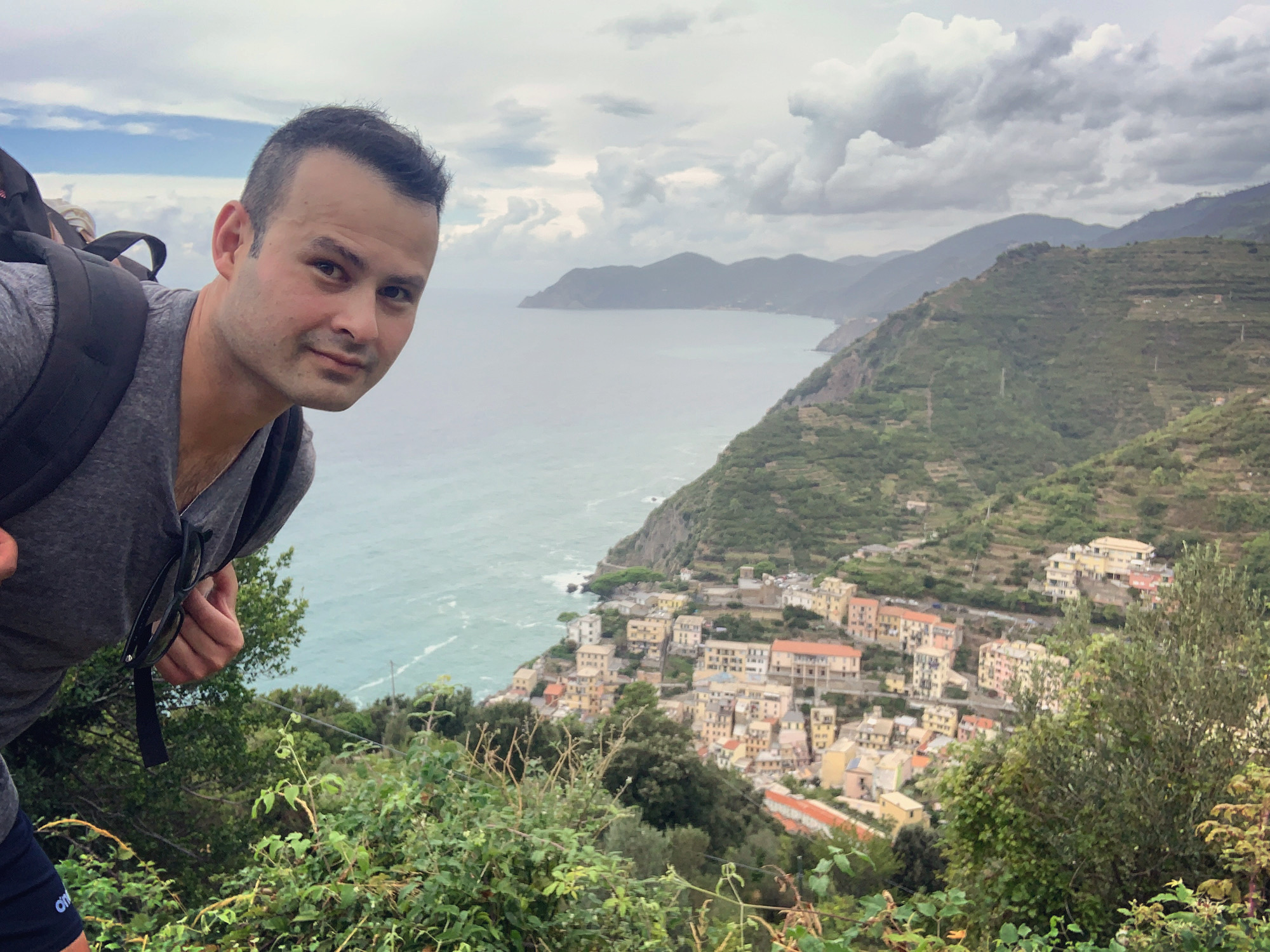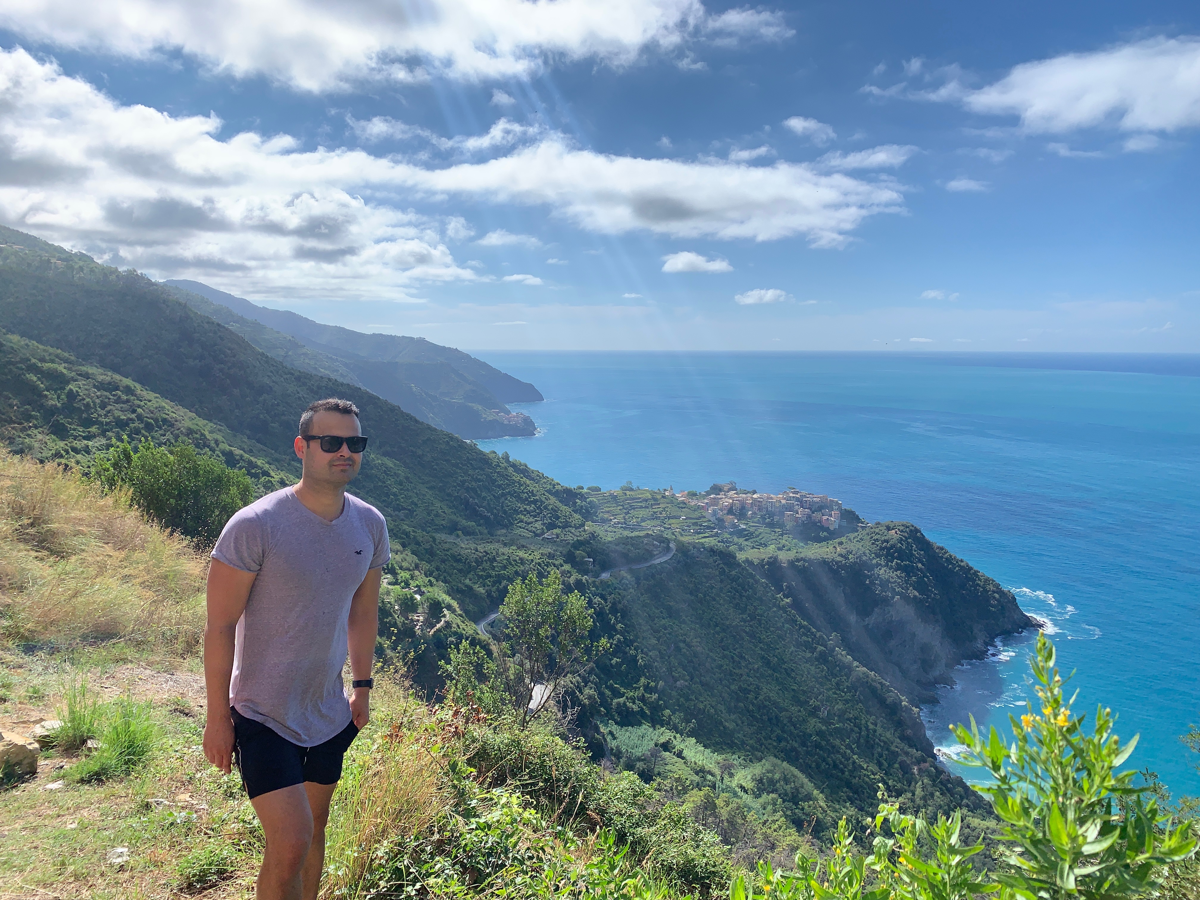 The town grows quieter as the streets rise from sea level and disappear under the canopies of cliff-hanging trees. The road winds upwards and sweat drips across my forehead. At Biassa, an elderly woman greets me ‘buongiorno’ as I walk next to her tomato field before I take an abandoned trail to the top and across a mountain range that minutes later opens up like a mirage of Mediterranean blue glistening across the horizon.
