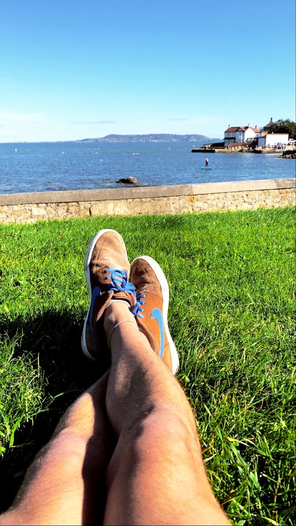 I spread my legs across the wet grass in Sandycove the next morning and take cold salty deep breaths, the breeze at this stage infused with the memories of a time well-lived in between dips in the Forty Foot and walks across to Dalkey.
