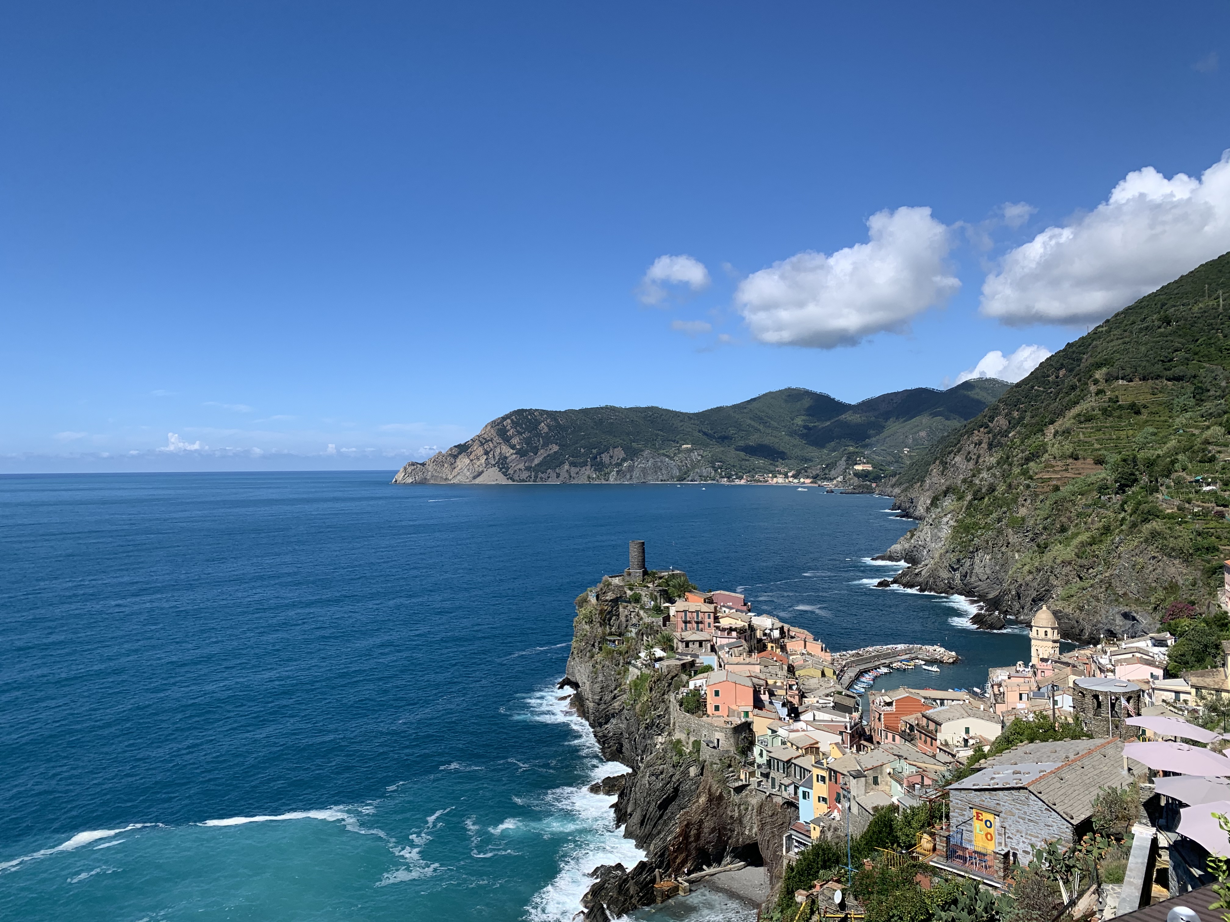 And once I finish my celebratory gelatto, I take the ten-minute train hopper to quaint Corniglia, like a good hostess, arms wide open to the late summer with good coffee within its narrow streets and refreshing sea water slamming into its small pier. I finish two days of hiking with an Aperol and a bowl of locally produced pesto, later walking around the village in a sepulchral silence only broken by the distant crashing of waves and the steel shutters slammed against the granite floors.
